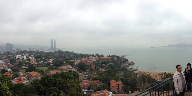 早上起来先到钢琴码头领取网购的鼓浪屿五大景点联票,建议大家网购门票再携带身份证于游玩日期08:20-15:00至鼓浪屿游客中心小木屋取票(原钢琴码头建设银行前,三丘田码头下船后沿左手方向的海边步行约10分钟即到)。景点里,在郑成功塑像的平台上,厦门本岛的海滨可以一览无余…