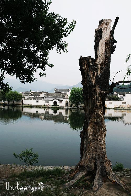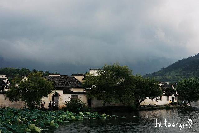 牛角:两棵大树犹如牛的两只角却有500年历史了 但依然丰华正茂 郁郁葱葱。宏村能打动人心的自然风景很多 无论是千年的古宅还是湖边垂落的杨柳 无论是墙角流浪的猫还是水边皖沙的妇人。在雨中我用一种再漫不经心不过的心情在村里游荡。