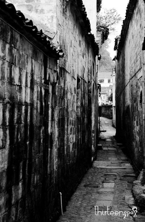 宏村的建筑主要是住宅和私家园林 也有书院和祠堂等公共设施 建筑组群比较完整。各类建筑都注重雕饰 木雕、砖雕和石雕等。村内街巷大都傍水而建 民居也都围绕着月沼布局 住宅多为二进院落 有些人家还将圳水引入宅内 形成水院 开辟了鱼池。婆娑的细雨又像个高妙的画家 它轻泼慢洒 勾勒出了一片薄雾轻烟的非常之美。乳白的雾气迷离 迷离中凸显着诗一样谜一般的古老房屋 被岁月浸渍成锈迹斑驳的白墙黛瓦 极像一幅素淡朦胧的水墨画。远远望去 山水画廊的静谧 白墙黛瓦的清幽 泛着青光的石板路 残荷断桥的辉映,在灰色的天空下显得格外的落寞 但有种孤寂的美!很惹人喜欢!