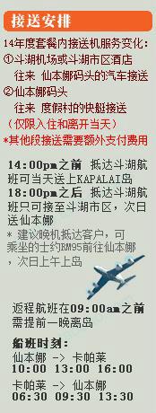 楼主预订的是卡帕莱3天2夜的套餐,2013.11.28上岛,11.30离岛,机票的时间正是上、离岛的当天,但你也可以选择提前一天到达仙本娜,次日一早上岛,这样就可以充分利用套餐的有限时间。