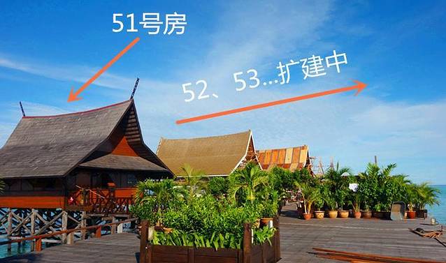 21-51号房:距离活动区域较远,相对幽静,但有时会在阳台看到从其他度假村开过来的快艇和浮潜客;22、24、26、28号房阳台面对花房,视线受阻;46-51号房有无敌海景浴室,尤其是51号,最远却最幽静,房间三面环海,在房间就能看日出,所以一直令游客趋之若鹜。