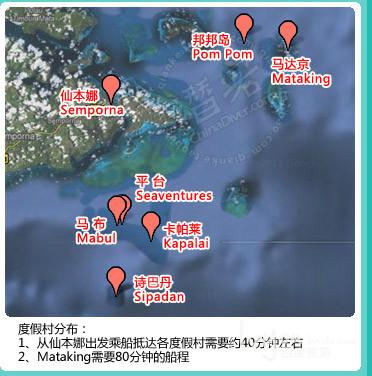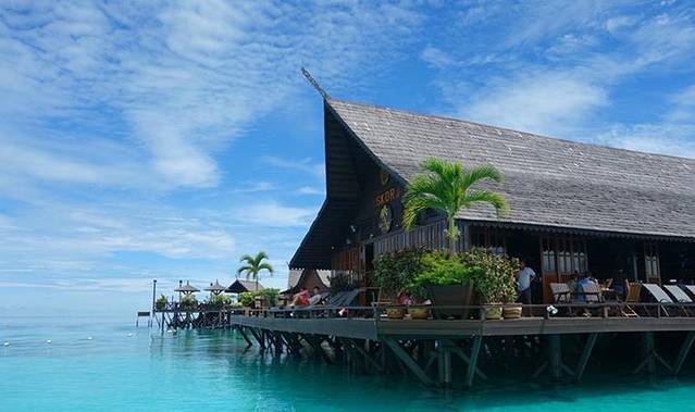 马布(Mabul):与当地原著民共享沙滩,全水屋,水屋不能直接下海,中国游客较前两岛多,但因为度假村旁就是沙巴当地的原著民,所以会有生活垃圾,海水也相对浑浊。
