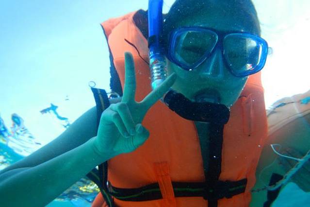 浮潜,简单来说就是背向太阳浮在海面,脸向海底以观赏奇妙的海洋世界。不会游泳的小伙伴不用担心,套上救生衣、面镜和呼吸管就可以浮潜(楼主就不会游泳),当然,如果加上脚蹼(加快速度)和潜水服(防晒防水母)就更完美了。如果不想增加行李负担,可以在潜水中心租用。万事俱备,你就可以开展奇妙的海底之旅了。