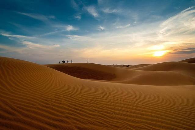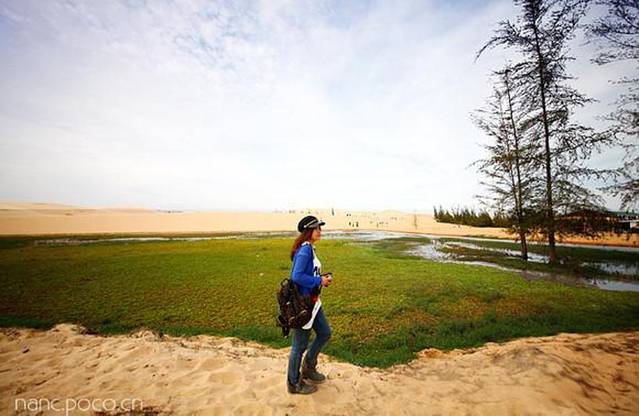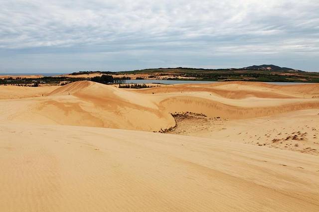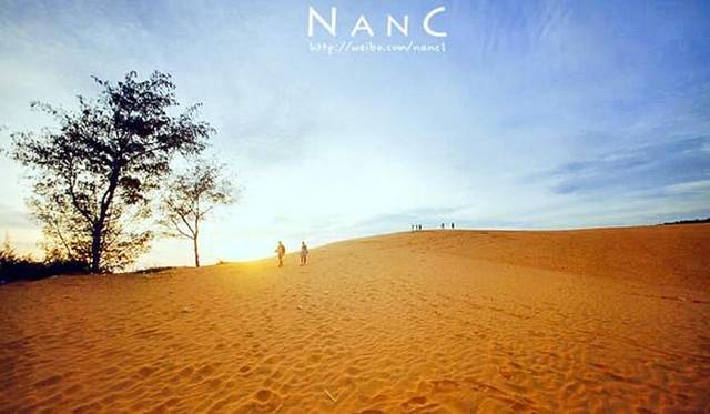 当红沙丘映入眼帘时,我震撼了。不同于以往所见的金色沙漠,而是一片炽热的红,或许这才是真正的热情沙漠吧。吃力的爬到红沙丘的最高点,放眼望去看到的是一片蔚蓝的海。在美奈,这一刻水与火是可以并存的。 在一滩宁静的湖的后面出现了连绵起伏的沙丘,柔白略带浅黄的沙丘和一片透彻宁静的湖交织在一起,眼前的美无以言表。白沙丘的旁边还有一个小池塘,长满了睡莲,我想盛夏的这里一定更美吧。 天微亮,推开窗的刹那间海风迎面扑来,映入眼帘的美景犹如一幅浑然天成的油画。我披上衬衣,踩着拖鞋就奔出了房间,来到了仅几步之遥的海滩边看日出。闭上眼,耳边传来轰隆隆的海浪声,咸咸的海水味和暖暖的阳光快要将整个人给融化了。