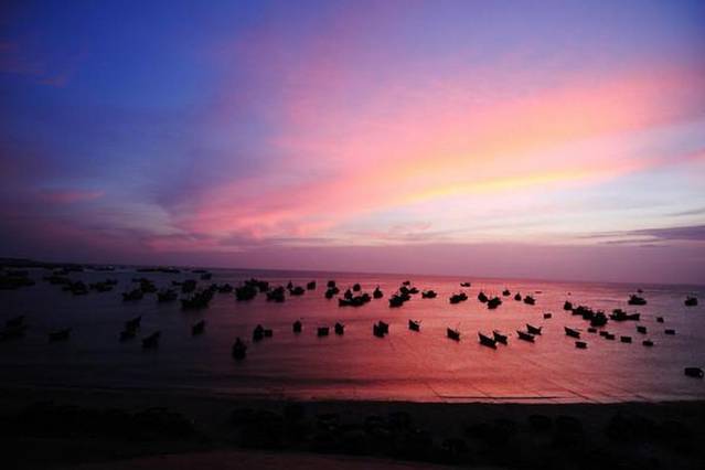 未去越南之前,我对它的印象充斥着矛盾。脑海里一半是茂密的热带丛林、浪漫的法式风情,另一半则是呼啸而过、满街穿梭的摩托车。 《情人》里所描写的那个浪漫而又风情的西贡,我以为它将会成为越南之行的涅槃。然而却是另一座小镇美奈,让我至今流连忘返。 美奈,Mui Ne位于芽庄和西贡(又称胡志明市)之间,紧靠海滨城市潘切。从芽庄或者西贡到美奈的车程约4到5个小时。这个小小的渔村被一条环海公路分割成了两半。在这里,你能见到这样一个奇特罕见的景象:环海公路的一边是烟红的沙丘,另一边则是蔚蓝的大海。