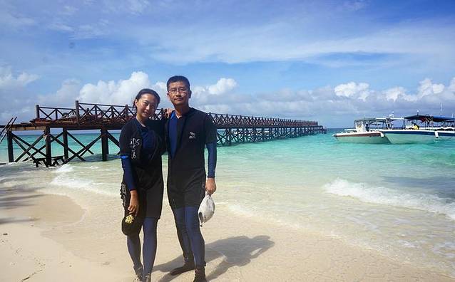 Boss义务陪伴我们fun dive的故事就不再赘述,这一义举已经让其他学员羡慕不已。潜诗巴丹那天,因为知道等我们回来时boss还在SWVR教学,没有碰面的机会了,早上出发前抓紧时间,和两位可爱的教练,再次合影留恋。老猪跟我说,boss那么爱喝中国茶,回来一定要寄一些好茶给他,国际快递再贵也要寄! 也是因为自己的亲身经历,我们更能懂得另外一位潜水达人说的话,她说,跟谁潜往往比潜哪儿更重要! 舍不得离开boss。。。