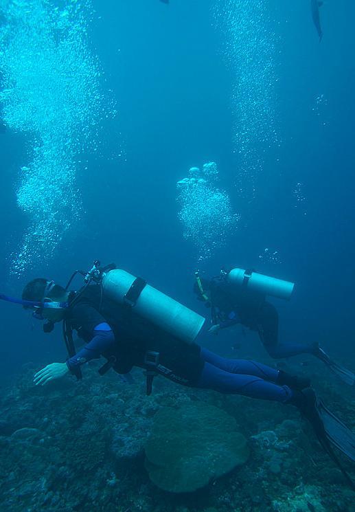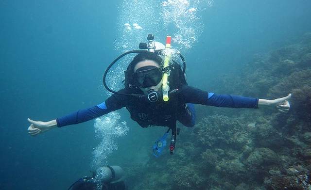 毕业后的第二天,安排的是马步岛两次自由潜。 还是一样,7点起床就开始各种不舒服,眩晕、恶心、干呕、吃不下东西、耳朵不舒服(老猪的是痛,我的是嗡),把自己穿进湿冷的潜水衣,再跳到摇晃不止的船上,真是想shi的心都有。教练教成我们之后,是不会陪我们去自由潜的,一切由潜水长(DM)带领。我们两个像刚断奶的孩子,面对陌生的潜水长,有一点小小的不安。我特地跟潜水长Tony说,今天是我们毕业后的第一潜,拜托你多多照顾啊。一船人都笑了。