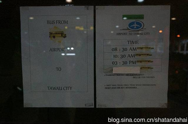 斗湖机场大巴柜台,可以做大巴到斗湖市区,车程约20分钟。一天只有三趟大巴,票价成人10rm,儿童5rm。之后我们便包车从斗湖到了仙本那。