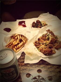 到了名宿收拾了一下,我们开始打麻将……打了一圈,突然又觉得饿到不行,冒雨出去买宵夜……香酥鸡、炸鸡排、薯条、台啤……简直就是宵夜的绝佳组合~~ 吃饱喝足之后继续战斗,然后……我和爆先森因为要不要做清一色而大吵一架……牌局不欢而散~