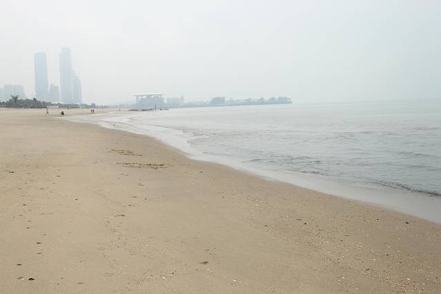 早上觉得静悄悄的,打开门才发现雨好大,只有简化旅途,到海边玩耍。我们住的地方离海边很近,就几分钟的时间就到海边了。