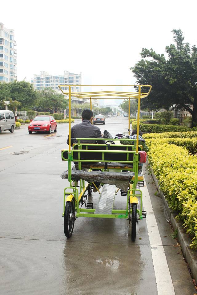 在海边玩耍了很久,发现下雨下下小了,立马打算环岛路骑自行车车。找到一家车行,租车3小时,给他说好了等下他来接车回去,免去了骑自行车骑回来的麻烦。就这样一路上骑行就来到了曾厝垵。这个小渔村感觉一般,比较乱,在这里吃完了饭。
