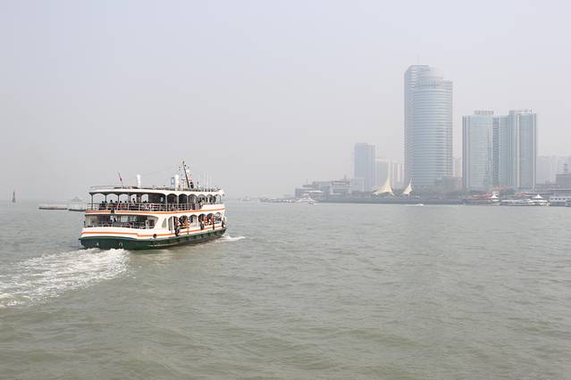 一切很顺利,机场出门右拐就看到到轮渡的机场大巴,迅速六人上车;交通也是很通畅,20多分钟就到了轮渡码头;到码头一看好多人,幸好先在网上用身份证买好了船票,迅速排队刷身份证上船。轮渡很快就几分钟时间,到达“三丘田码头”。