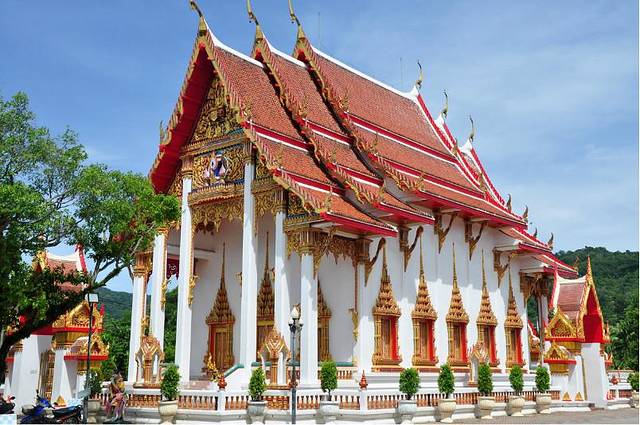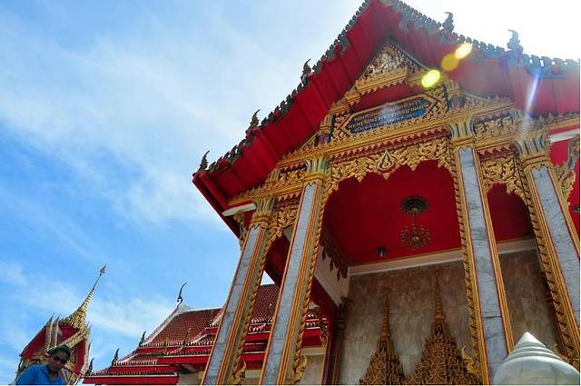 在酒店巷口问了taxi service价格。单边去查龙寺再去卡隆海滩最低要1400b。TT说酒店门口是不是牵涉到分成的问题所以更贵。思索说去江西冷车多应该更便宜。于是冒着大太阳走到江西冷。顺便说一句。 cha-long temple。又叫wet cha-long。龙寺。金碧辉煌。融合了泰国中部北部南部的风格。我在网上查了下大概价格,基本没有从芭东包车过去的。大概是有点远吧。来泰国不去逛寺庙那我遗憾就大了。我是虔诚地敬重佛的人。朋友戏谑我一年要抽3次签,当然没有那么夸张,只是旅途中,如果遇见寺庙。我是必然要进去的。见庙烧香,遇佛拜佛。