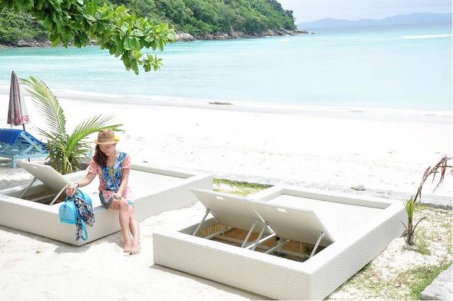 查龙码头聚集着很多去周边各个小岛的人们。好多天朝人民从各个酒店被接来,人一多就开始噪杂。好多是一日游。只有我们和另外两家人好像是要住一晚的。到达后会先check in。给每个人贴上蓝色红色黄色不同的标签。可能就是分船的依据吧。到码头有一段碎石路还有沙滩。拖着大箱子很是吃力有木有,还好有小黑帮忙搬上船。屌丝本质的我们来之前听说皇帝岛上东西很贵所以就很屌丝气息地带了4大瓶水在行李里面,累的要死。结果后来发现皇帝岛上物价真心可以接受,还没有国内蜈支洲岛夸张。哎。。坑爹了。TT一再警告我今后不允许再带那么多行李。要累死人。