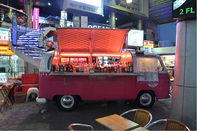 有办法只能寄存了行李然后借了酒店的雨伞出门去,到7-11买了点东西,然后又支撑着晃倒街上随意找了个还在营业的小店吃饭。刚到的我们人生地不熟,完全分不清楚方向。凌晨的街道并不冷清。不过两旁的酒吧看起来都很恐怖的样子,三三两两的人妖和当地黑仔聚在门口,我们生怕被拖进去抢了或者杀了。真心很吓人。 随意找了大排档坐下。照着menu点了些自己都不知道是什么东西的东西。点菜的小黑一句英文不会。我们也只能算6.7分的半调子。索性看图乱比划。 结果我点了一个蛋包肉臊子之类的还行,朋友点了一个牛肉粉之类的完全不能下咽。当时我真的觉得我们很有点泰囧的味道。完了结账还是不贵的,大概就是10来元人民币一份的样子。