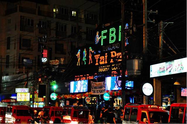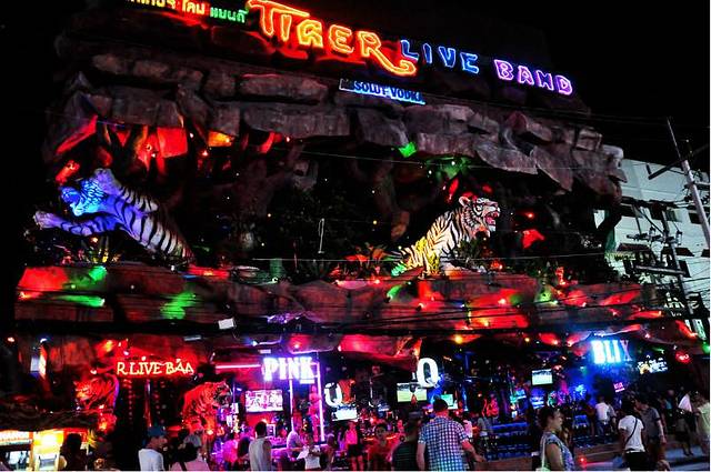 入夜后。芭东的酒吧街展示出了它的独特魅力。妖娆香艳。各色人种汇集。各种暗流汹涌。各式欲望横流。混迹其间,见识了许多人口中脑中想象中的泰国。鳞次栉比的酒吧霓虹闪烁,钢管舞女郎大胆奔放,街灯闪烁着暧昧的光。站街的人妖等待特殊需求的客人上门,满街拿着pingpang show,sexy show单子招揽生意的人会询问每一个路人,tiger和a gogo放着震耳欲聋的音乐。生意奇好。远远就能看见吧台钢管上妖艳如蛇扭动的身躯。靠近芭东海滩那边的酒吧则比较内敛一点。基本是老外聚集喝酒的处所。