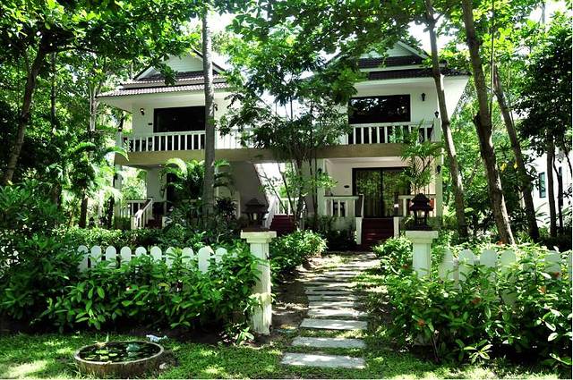 吃完饭他们参加一日游的人们就自由活动,2点半就集合回去了。而我们要在这住一晚的就散了。自己回酒店。我们先回酒店check in。问了路。顺着racha外面唯一的小路大概十分钟就走到我们定的rayaburi resort。 Rayaburi是原生态园林式的酒店。跟racha贵气的独栋别墅风格不同,rayaburi更多是联排的小屋子,泳池边的公寓房带着越南风情。泳池很美。绿化很足。仿佛住在森林里一样。600多人民币一晚的价格相对racha还是很给力的。强烈推荐大家可以住这里。 房间很美。带空调,带wifi。前台的泰国小妹长得很美,有点像泰剧里面的女演员。