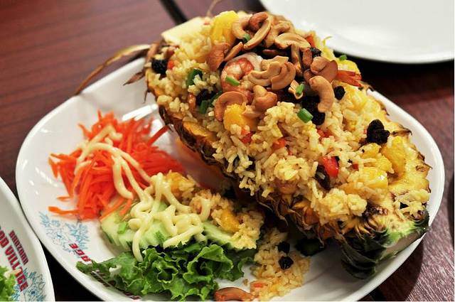 这家在各种攻略里频繁出现。难得的是盛名之下确实名副其实。比很多大的店做的味道都好吃。之后的几天,只要到饭点我们基本都是直奔这里。搞到最后。老板娘都把我们认成了老熟人。此行最好吃的菠萝饭,冬阴功汤和BBQ蒜蓉大虾都是在这里吃的。这也是我们此行每顿必点的东西。老板娘态度超好。还会几句简单的中文,我发现二楼加工的店很多都挂着中文的标语,因为到这里的天朝人民实在是太多了。而且攻略这个东西,确实是太方便太大众了,所有人都是直奔这一家。旁边的完全没有生意。诚意给要去的各位推荐your kitchen。虽然他们生意已经好到不用我们再多加推荐。但是他们做的菜真的是实惠美味。朋友是做餐饮的。