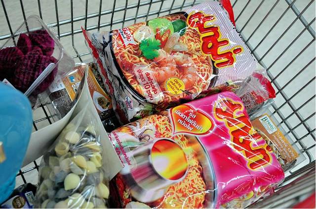 最后我们还是冲到Big C买了好多回国送人的礼物。泰米啦,泰国很好吃的MAMA牌方便面。冬阴功味和火锅浓汤味的。真心好吃。辣死人。但是超爽。最后结账给了我们11个印花。凭10个换了一把类似双立人的剪刀。朋友找来一个大纸箱把东西全都打包了。巨大一包。重死了。一直在担心会不会超重要罚款。对了。big c结账最好是能一起结账。这样可以退税,我们为了好算账分开结账。结果我们不到2000B总额。朋友则是有几款特价商品不参加。最后都没有退税。亏了。朋友在江西冷买的包包退了税,不过也不多。就20多B。机场退税的时候看到旁边的天朝同胞退了起码2000人民币。