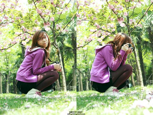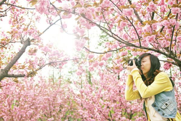 作为繁华中心地段的公园之一,中山公园一到天气好的周末,举家来公园铺帐篷晒太阳放风筝的人真是多得草地都下不了脚,汗。在公园一处种植有几十株的樱花树,同样是花期较长颜色较红的重瓣樱花。