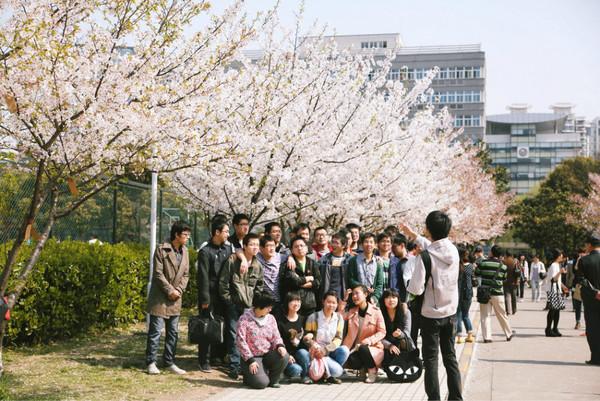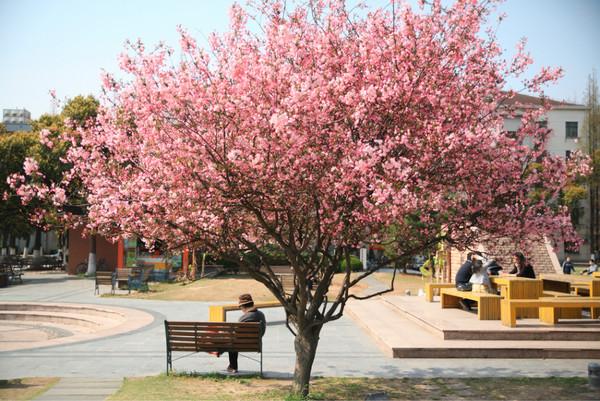 趁着下午的好太阳,忍不住又拐去母校同济大学晃了圈。不管哪个季节,学校总是各种有爱。在学校赤峰路南门进校,一整条路两边种满了樱花树,人称樱花大道。虽然从规模上来说不及大名鼎鼎的武汉大学,但在校园里能见到这一整片的粉色云团,比起公园总更有清新味道哟。读大学的时候没有好好珍惜,如今每到春天回校赏花却成了乐此不疲的固定行程,即使这几年来闻名而来的游客愈来愈多。每年花期大约从3月中下旬至四月初,短短不过两三周的时间。