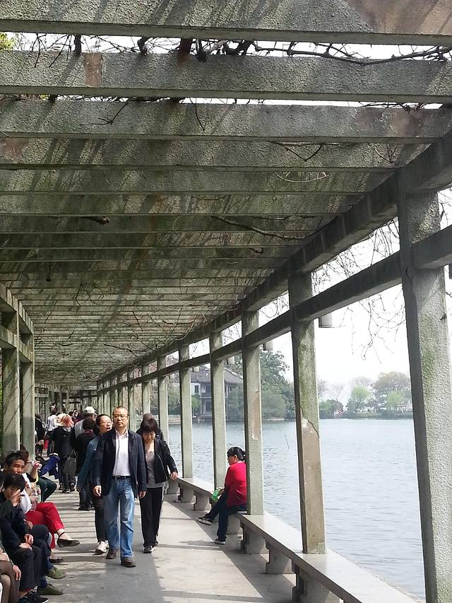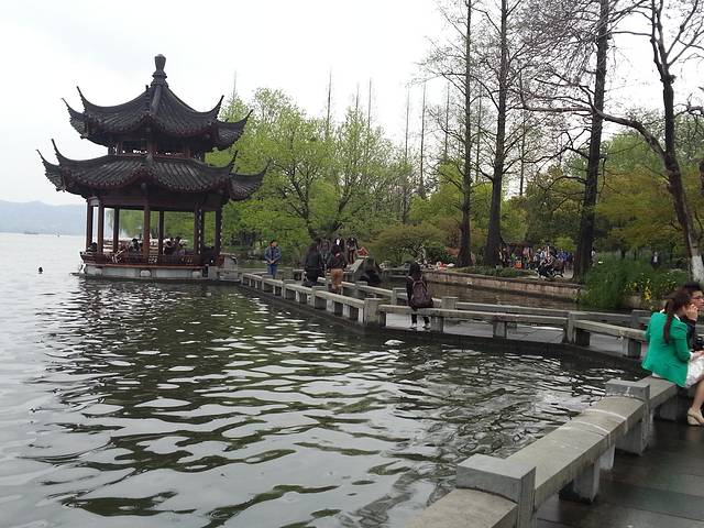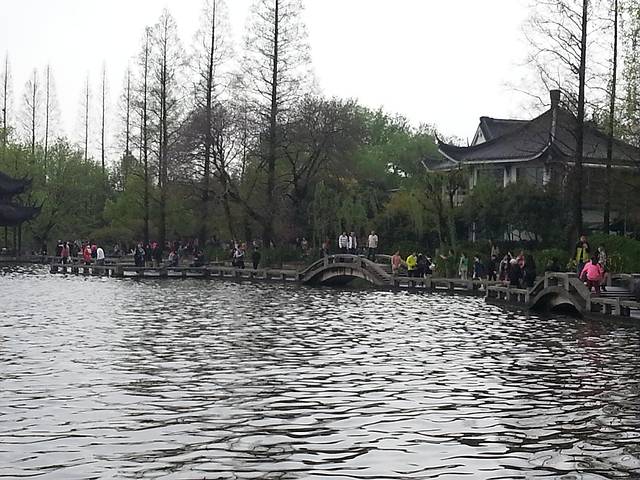 虽然没看到雷峰夕照,但是大家依然被美丽的西湖所吸引。 接下来我们又经过长桥公园和西湖十景之一的柳浪闻莺, 感受一下当年梁山伯和祝英台在长桥依依不舍的情景。