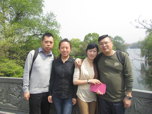 我们从岛上直接坐去花港观鱼的船,这个公园好美啊,在河边的廊桥还可以看到远处的雷峰塔呢。我们和环环GG,丽丽MM,也在这里留下了我们的倩影。西湖水美,西子人美,西子的情郎帅。哈哈。