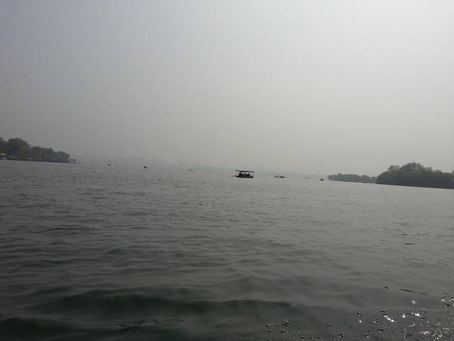 我们一直想租小船,可以一边叹茶,一边可以欣赏西湖的风景,可是现在西湖可能分成一段段的,建议大家在苏堤那里租那种人摇的小船,150元/小时,这样大家就可以近距离欣赏到三潭印月了。大家的一元钱准备好了吗?我们这次是坐的大船。55元包含了上三潭映月岛的门票。
