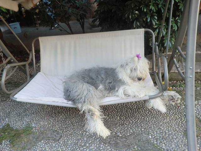 客栈的大狗,霸占了我们的摇篮,悠闲的很