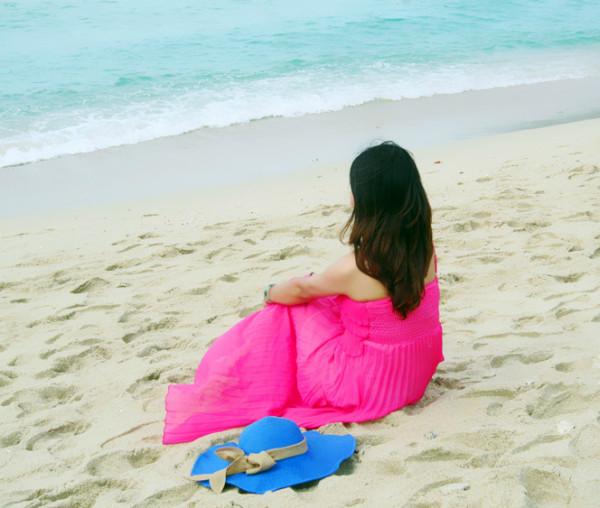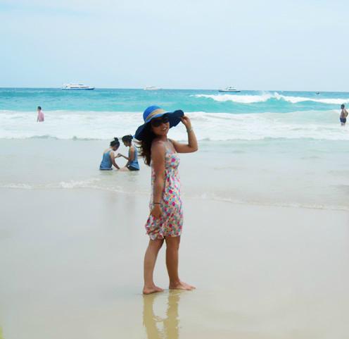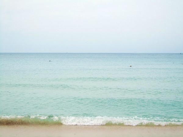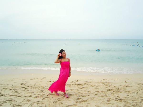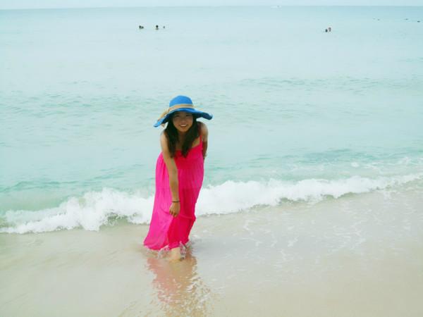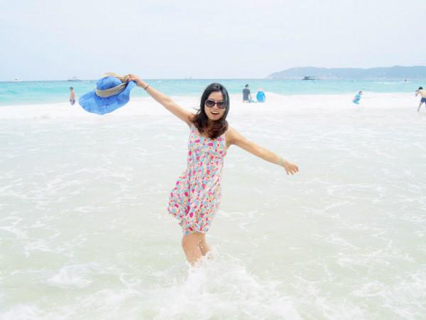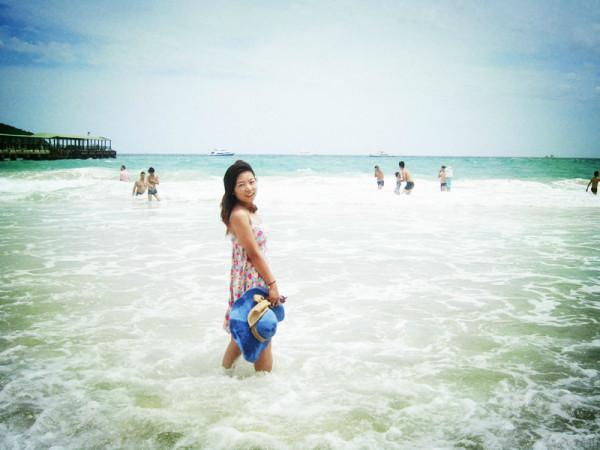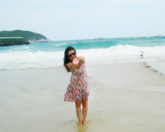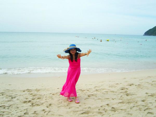梳洗妥当,立马奔向了梦寐以求的海滩,当脚踩在柔软细沙上,吹着微微的海风,听着海浪轻轻的拍打声,温暖的阳光撒在身上,远处一片蓝让我感觉似乎时光停止,只想停留在这一刻,人的一生一定要看一次真正的大海,清澈,透蓝,宽广,让大海来冲走那些烦恼,困惑,迷茫,剩下一个安然的自己。