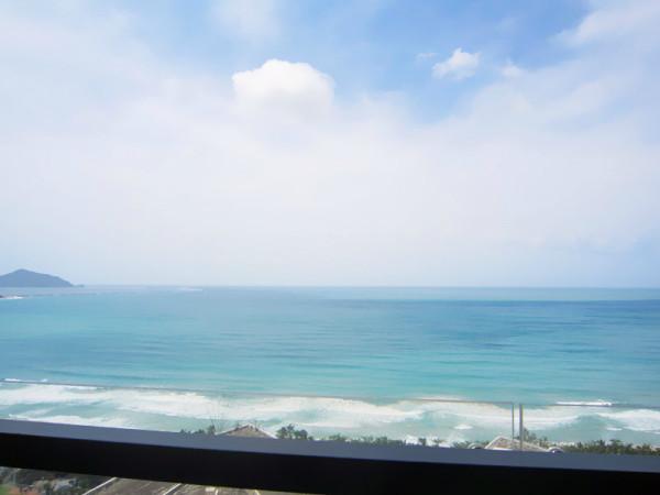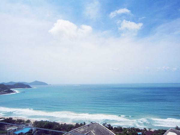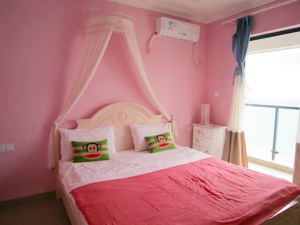我们住在大东海的金贸海景花园,距离海滩5分钟就到了,推开房门一瞬间我们就乐了,和图片上的布置一模一样,就是我要的感觉,粉红色的墙,大嘴猴的靠枕,最最最让我爱的就是阳台正对着的那片蔚蓝的大海。。。