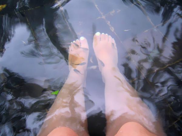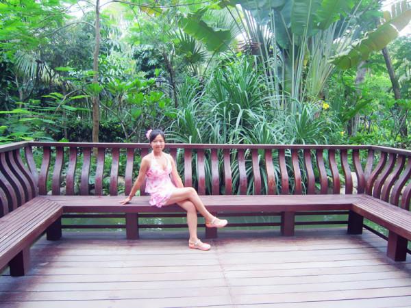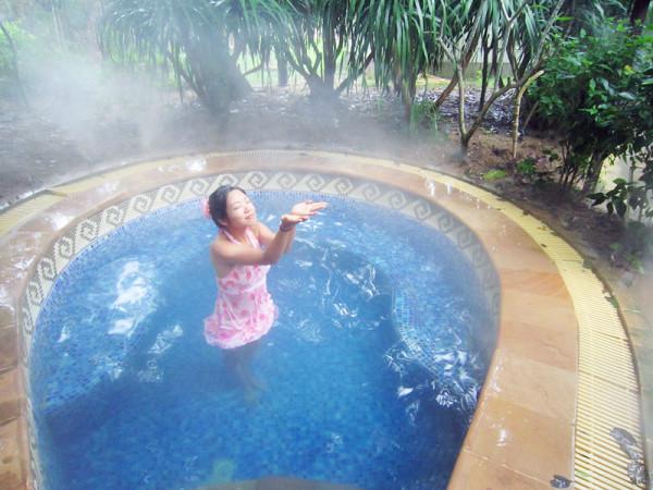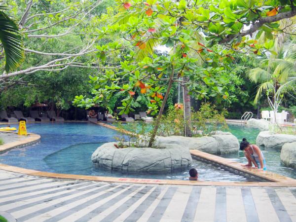 在海边玩了一上午,上午的阳光没那么大,但还是需要擦防晒霜,我擦的是水宝宝SPF70,每隔2小时就补擦一次,住得离海滩近可以随时回来换被海水打湿的衣服和补擦防晒霜虽然麻烦一点,后来证明没晒伤还是值得的,正午的阳光开始毒辣起来,我们选择去泡温泉。三亚的温泉也是早有耳闻,我们去了距离三亚38公里的神龙谷温泉园,这里是新区,环境好,人也相对少些,人比较多的是集中在三亚南田温泉,从住处走一个站(10分钟,我们住的地方交通便利,很多地方步行都能到)到夏日百花广场就可搭乘到神龙谷温泉园的大巴车,这趟车一天发两趟,10:00或15:30分发车,14:00或20:00返回,在车上迷迷糊糊睡着了,醒来时已经到了温泉园。