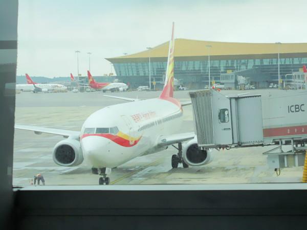 第五天(8月16日),原订7:45分的飞机,在我们凌晨五点半准备出门时突然收到海航发来的通知,因公司计划调整,延误到11:45分,外面依然夜色袭人,又回去接着睡,后来到了机场飞机又二次延误到2:00起飞,时间还早,无聊的在机场闲逛起来,海口机场也有个免税店,只是只开张了部分品牌,远没有三亚免税店那么大