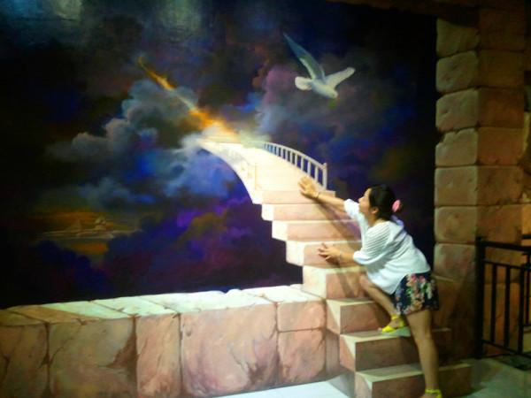 吃完饭向奇幻艺术馆出发,这是市内的一个艺术馆,就在市教育局旁边,我在网上订到了48元的票,其它网上订的好像是68元的居多,现场买票是148元一位,还要排长队,坑爹吧,网上订票取票时直接报名字和电话号码就能进去了,不过里面的东西只能让我说太有创意了,值了!