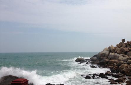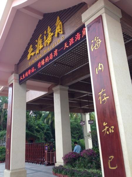 吃完饭时间也还早,2点半,跟老婆说,不如去天涯海角看看,离酒店也很近,不过6、7公里。步行至水利大厦的25路车站,刚好一班车过来,却非常拥挤,车上很多俄罗斯人。但在经过了沿途的各个酒店之后,剩下的人倒不多,10来个,几乎都是去天涯海角的。售票员便开始推荐了,在景区门口下车,花100元买票步行进去,也只能看到岸边的天涯,要想看到海角,需要另付费坐船,他们可以拉着去码头,只需要120元,坐船啥石头都可以看。有人心动,有人不屑,结果还导致有一起出游的4个人,2个在景区门口下了,另两个还坐在车上要去码头。我们本身对这也没啥兴趣,就在景区门口看了看,也就没再进去了。转悠了一会儿,又开始飘雨点了,刚刚好返