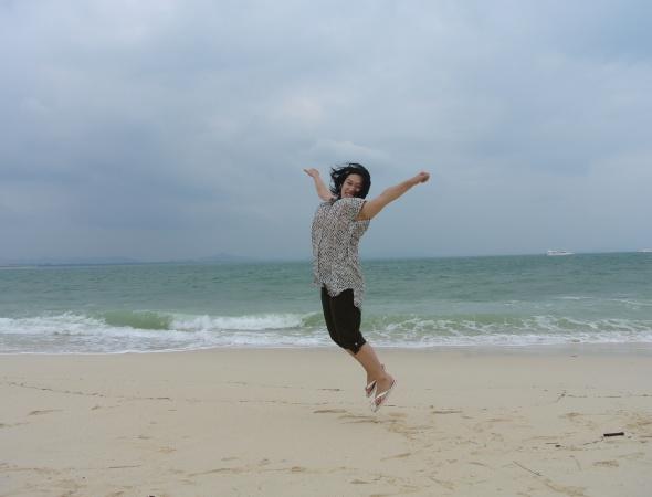 三亚天亮的比成都早一些,醒来就迫不及待想更清楚的看到大海。吃过早饭,就奔向海边,感受一下在沙滩、海浪中行走的感觉。
