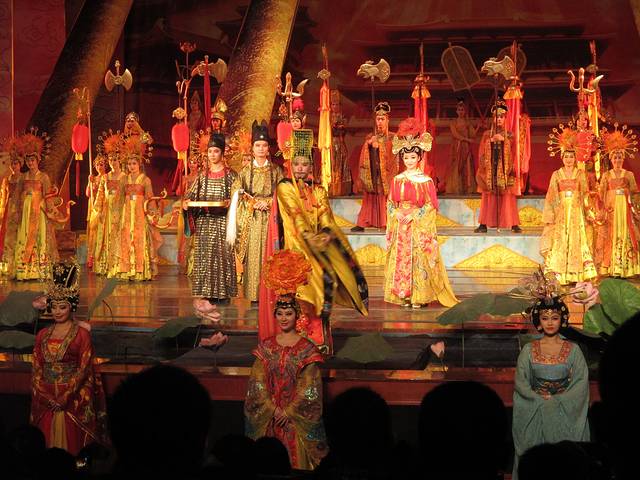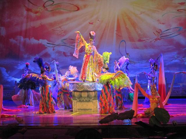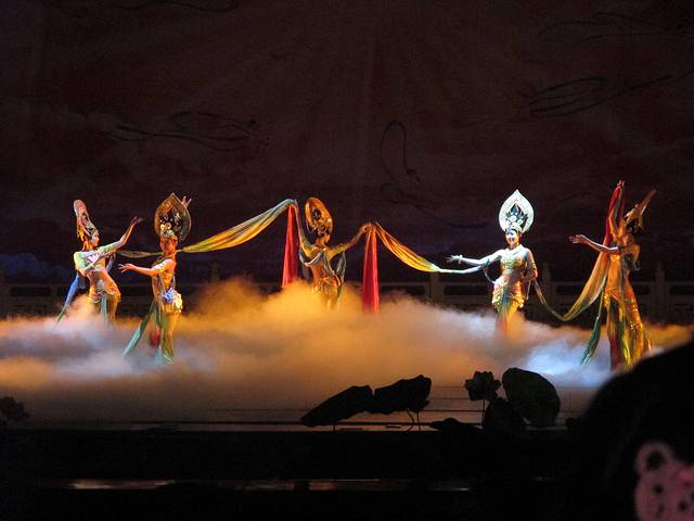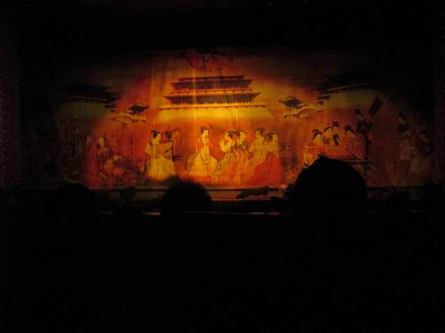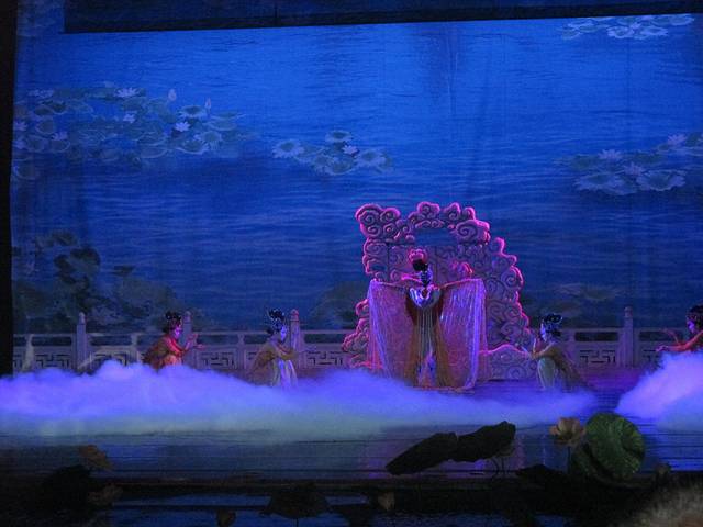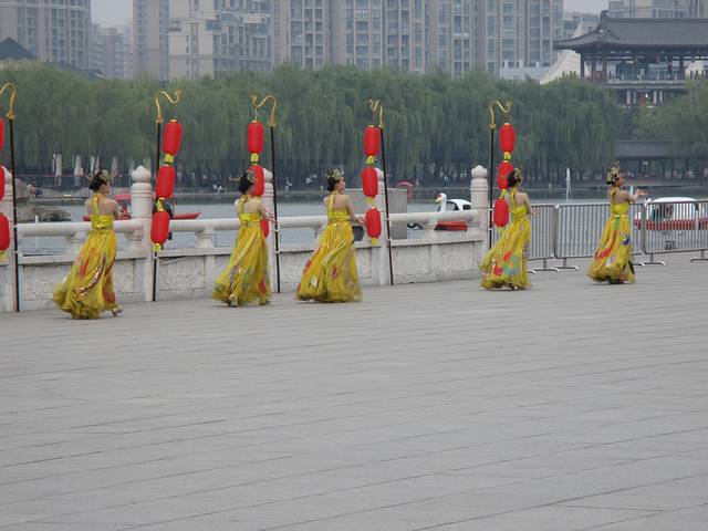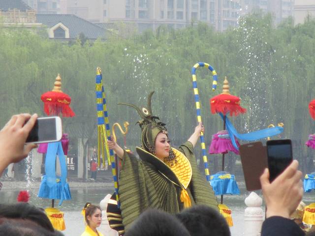 从回民街出来路过钟鼓楼,我们乘公交去了大唐芙蓉园。在门口买了梦回大唐和门票的联票,198元一位。学生证不打折。梦回大唐是下午5点15才开始的,在此之前你可以在园内其他地方看各种表演。照片中红红的表格就是表演节目及时间地点。芙蓉园很大,逛累了可以在草坪躺着休息。梦回大唐的表演很棒,很有震撼力,不过美女太多,看到后来略有点审美疲劳