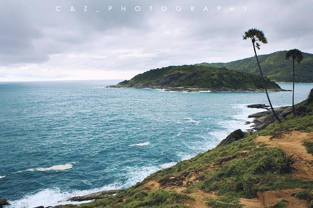 终于到了普吉岛的神仙半岛,天空云层很厚,想看夕阳是不太可能了,不下雨就已经很幸运了。沿着观景台的一条小路往下走,步行15分钟即可到达神仙半岛的最佳view point。胆大的人可以站到离海浪更近的地方,看到下图右上角的小黄人了么,那是距离海浪最近的地方