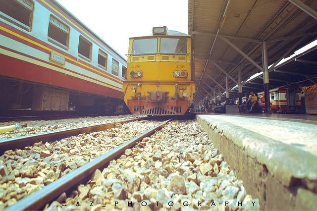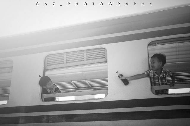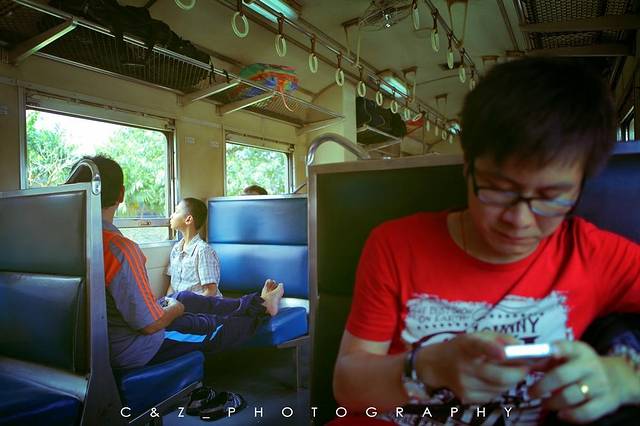 从曼谷去大城需要去华南蓬火车站坐火车。火车票不贵(40-50B),但是火车竟然可以晚点2个半小时,这让我十分无语。所以在这里特别提醒各位想去大城的小伙伴,为了保证你在大城的游玩时间,请选择曼谷开往大城最早的一班火车——8:30发车。时间:从曼谷到大城,大概2个小时左右就可以到了。座位:车票上没有写座位,列车也没有多少人,随便坐吧。曼谷人民应该习惯了列车晚点,一个个都很悠哉。即使列车晚点也很开心的小朋友。在列车晚点2个半小时之后,我们终于上车了,旁边的小朋友对车窗外的世界是如此奇,你却在这拿着手机打游戏。开了10分钟列车又停了,而且停了很久,真是很焦急啊!!!
