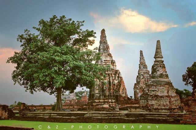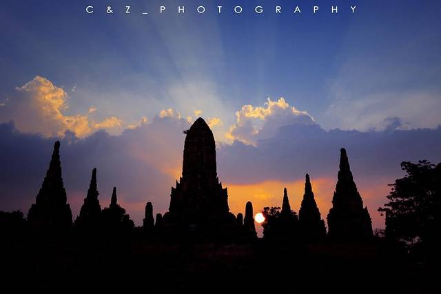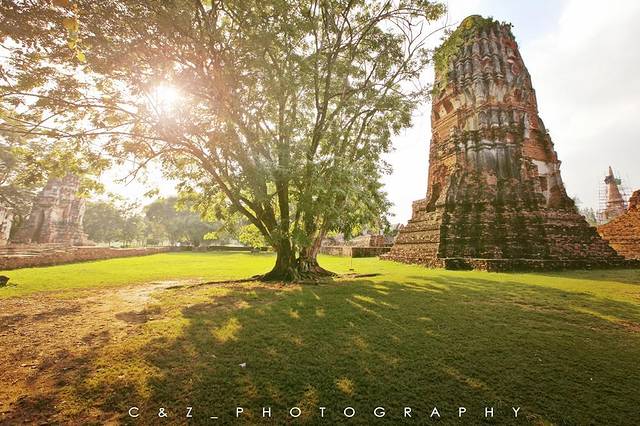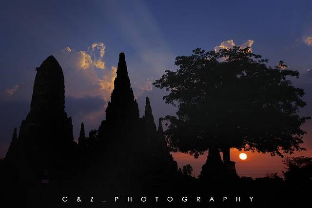 差瓦塔那兰寺(wat chai wattanaram)建筑风格最接近吴哥窑的寺庙。是16 世纪时国王 Prasat Thong为纪念母亲而下令兴建的。渐渐的,太阳西沉,夕阳下的寺庙有一种不同的感觉。
