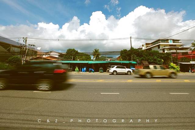 清早站在阳台上抬头看天,晴日当空。洗漱完毕,跑出去溜达一圈,只是去7-11买了个巧克力牛奶就已经出了一身汗。温度真高,紫外线也十分强烈,SO,爱美的各位小伙伴防晒霜请务必带好!有阳光、有白云、有椰树就算没有海水也可以闻到咸腥味。普吉岛的车速度都很快,摩托车的速度甚至比汽车还快。过马路请多看两眼再迈步。