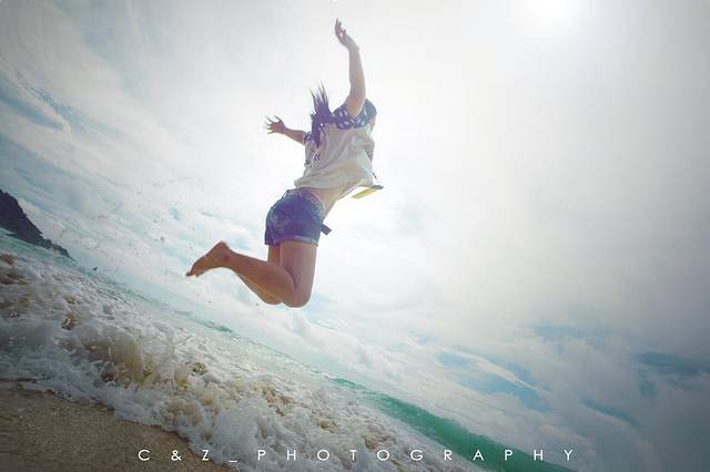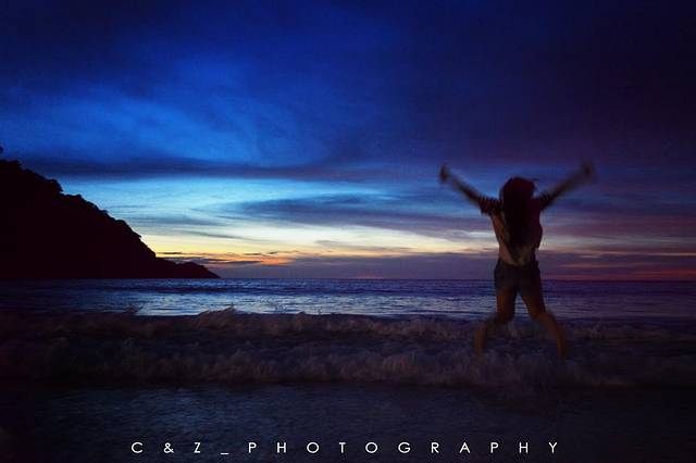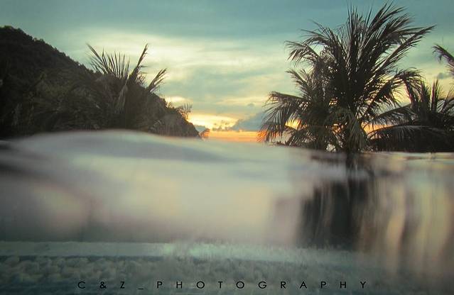 从海浪里爬起来,回头一看,太阳正落山,拿起水下相机就拍了几张。就用这两张照片结束皇帝岛的介绍吧!别的美女都睡在海浪里拍美照,我也睡在海浪里,只不过是在拍夕阳,边拍还边被海浪拍一脸海水。