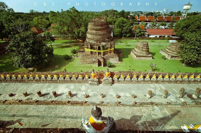 由于列车晚点,导致我在大城停留的时间不能很长,晚上必须要赶回曼谷。所以出了火车站后,我们直接订了一辆TUTU车带我们去几大经典的庙宇。1300B看六个景区。如果小伙伴们时间充裕可以在大城借辆自行车,然后自己慢慢骑着玩大城,成本应该会很低。亚柴蒙空寺(wat yai chaiyamongkhon),佛祖身边的猫。