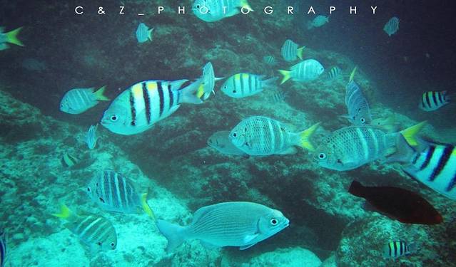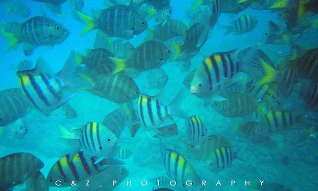 潜点在码头边的水下(靠近Ter Bay),水下环境没有想象中那么的好,珊瑚不多,鱼也比较少,值得庆幸的是看到了鱼群。