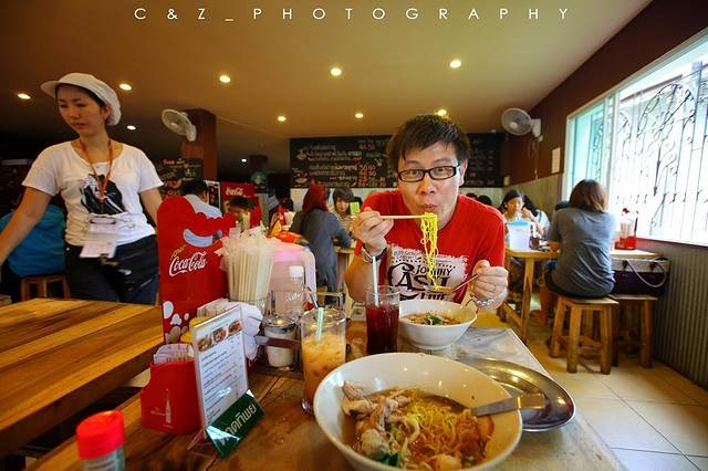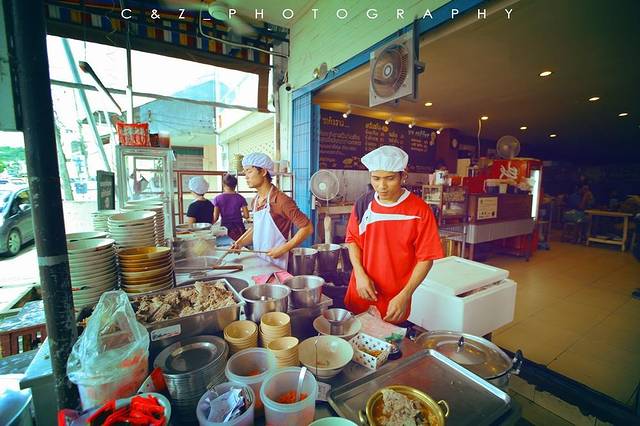 偶遇一家面店,全是当地人在里面吃面,味道简直一级棒。这大概是一家靠运气才能遇到的店,因为。。我不记得它叫什么了。。。反正它在普吉镇上。中午的吃客特别多,冰冻奶茶很好喝!两碗排骨贡丸面+两杯饮料总共24元RMB。