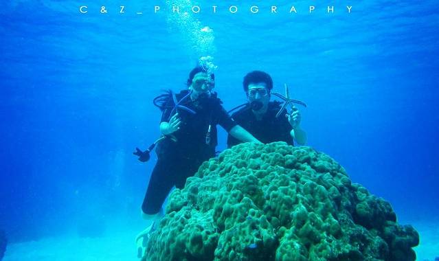 3)下水的时候耳朵真的很痛啊!心情要放松,这样才能更好的享受美景,一个教练带两个人,所以安全问题可以放心。