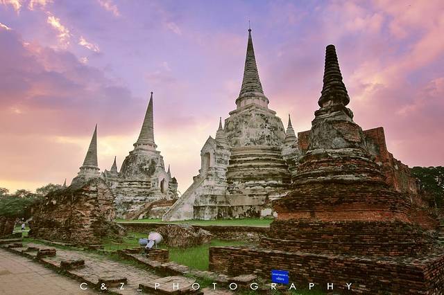 帕司山碧寺(wat phra si sanphet)本来存放着包若玛特罗卡纳国王以及他的两个儿子的遗骸,结果都被侵略者破坏了,图中三座白塔,本来就是用来存放遗骸的。