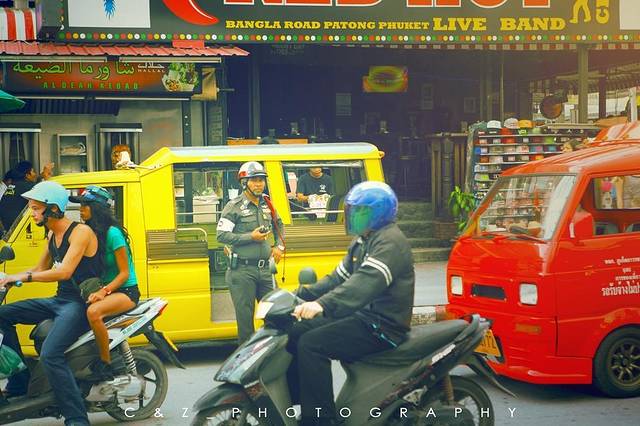 在普吉岛骑摩托请带好头盔,否则交警会把你拦下来,罚款200B的。(折合RMB40元)借摩托车不用有摩托车驾照,不过我们为了放心起见,把中国的机动车驾照带去了,也没有人查。
