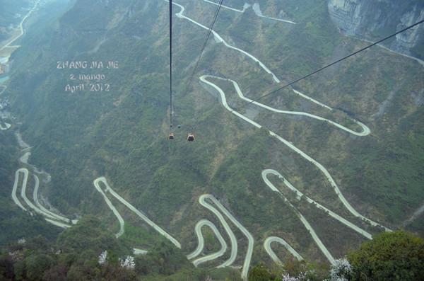 通天大道:被称为通天大道的盘山公路共计99弯,似玉带环绕,弯弯紧连,层层叠起,依山籍壁,直冲云霄,“天下第一公路奇观”横空出世,从索道上观看公路,有如蜘蛛网一般密集的公路,垂直高差达千米左右。