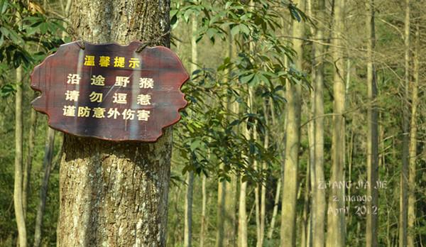 当我一个人拿着刚刚买的玉米甩来甩去并春风得意地踏入森林公园入口的时候,就发现有好多老猴子突然从被游客拍照的状态中全部瞄准我,并大老远的一直尾随。开始还以为是猴子对我身上衣服的明黄色敏感,便一直加快脚步的走,两个朋友还在前面忙着与森林公园入门处合影,惊喜的心情瞬间变成了惊恐,难道要我脱掉衣服吗,555,别追我了!